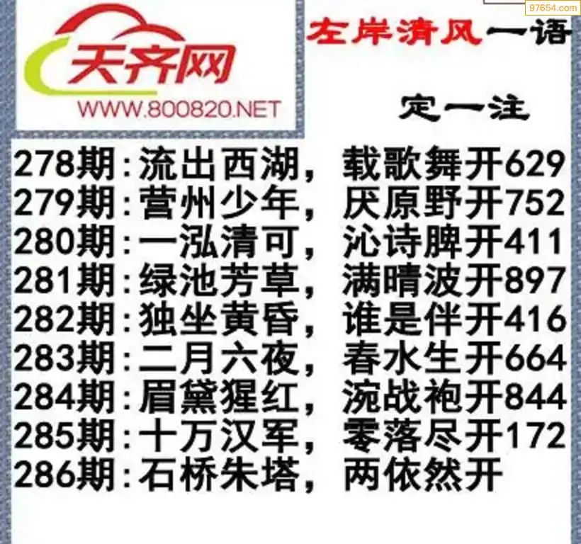 286期3D晚秋(乙种和值)谜:上奖一半 D:今日看后