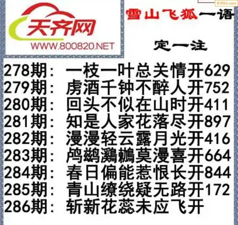 福彩3d左岸清风25年286期一语定一注