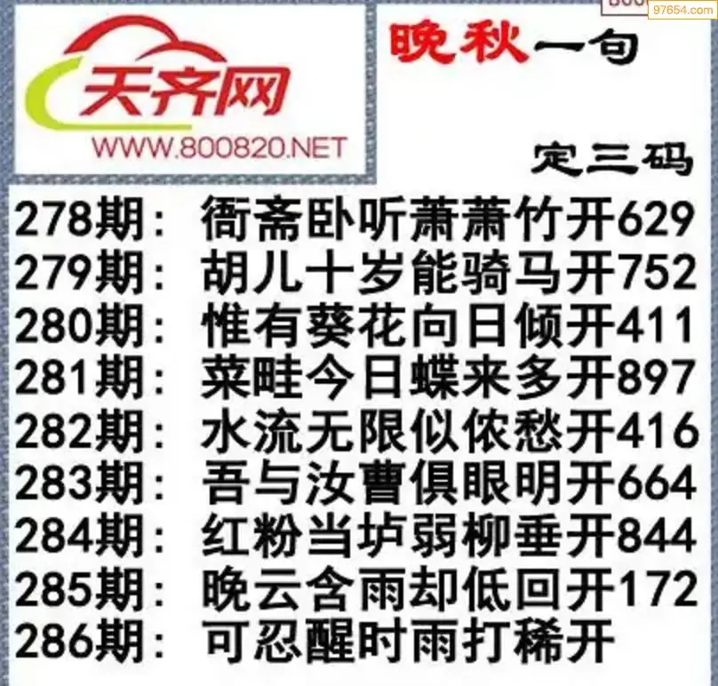 286期3D晚秋(乙种和值)谜:上奖一半 D:今日看后