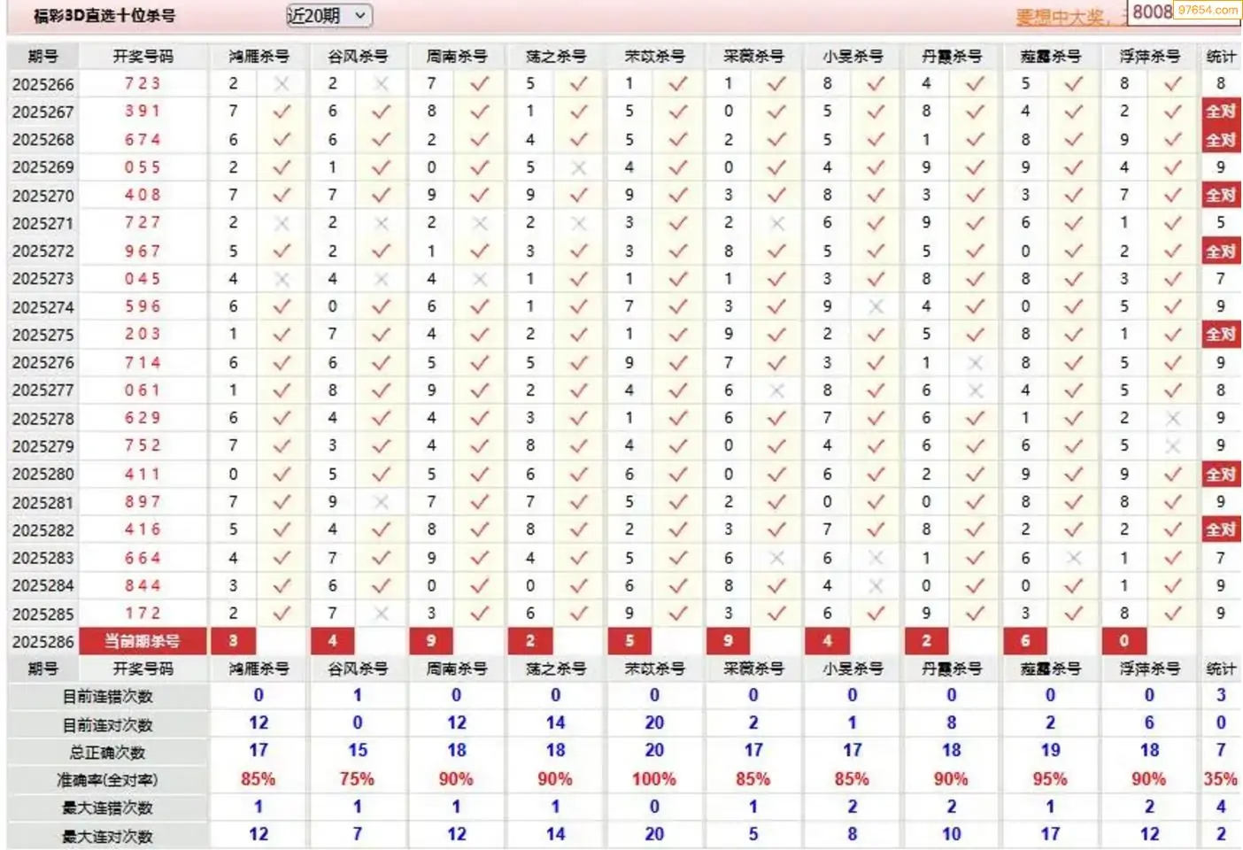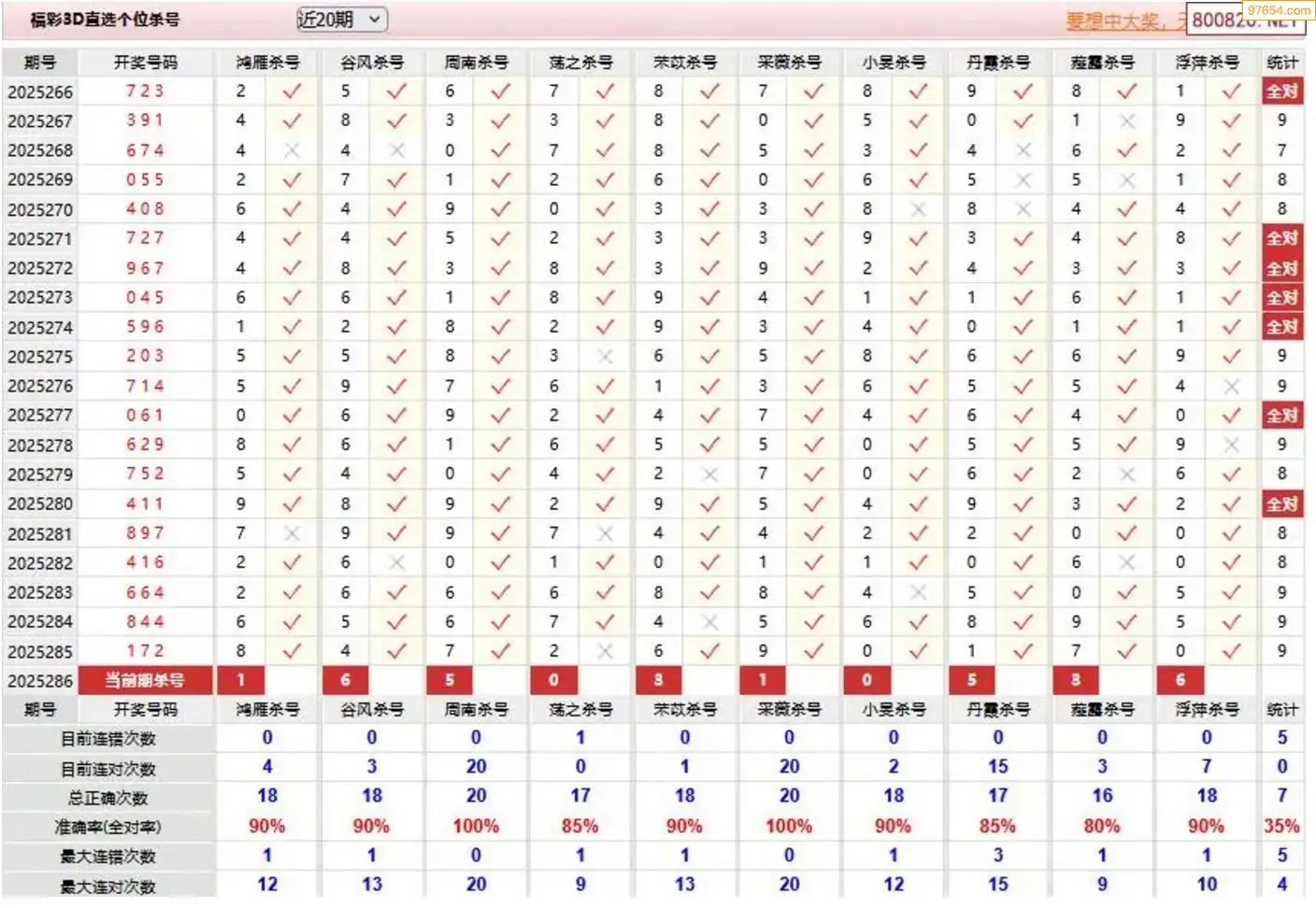 3D287期天中财神原创杀码条件汇总