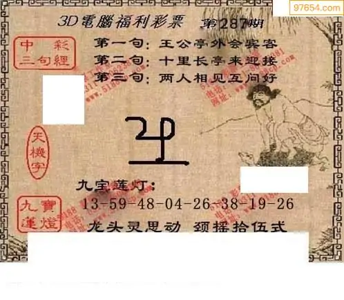 25287期福彩3D正版天宇和值谜