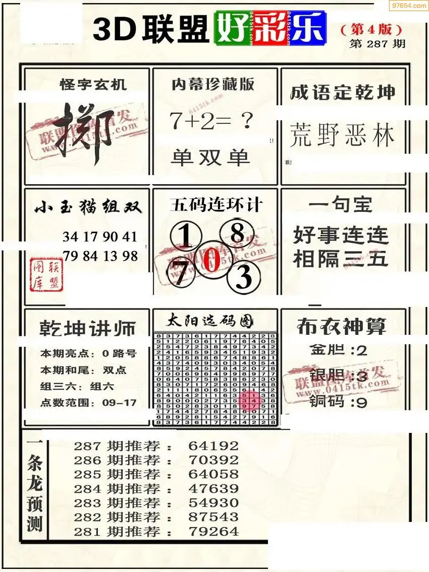 25年287期联盟好彩乐直通车4