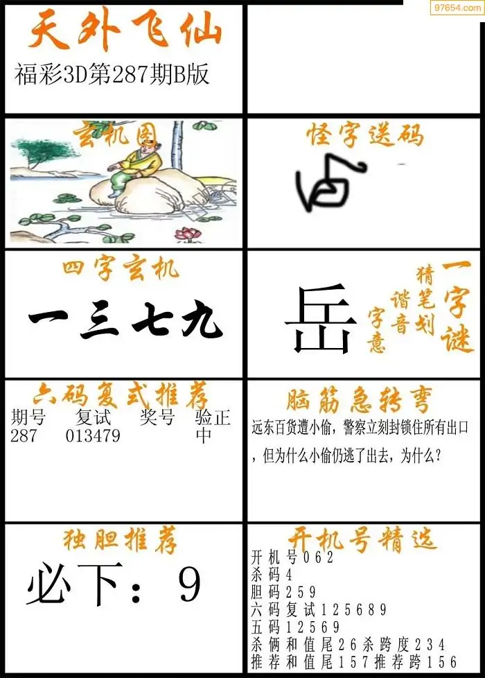 287期福彩3d天外飞仙B版