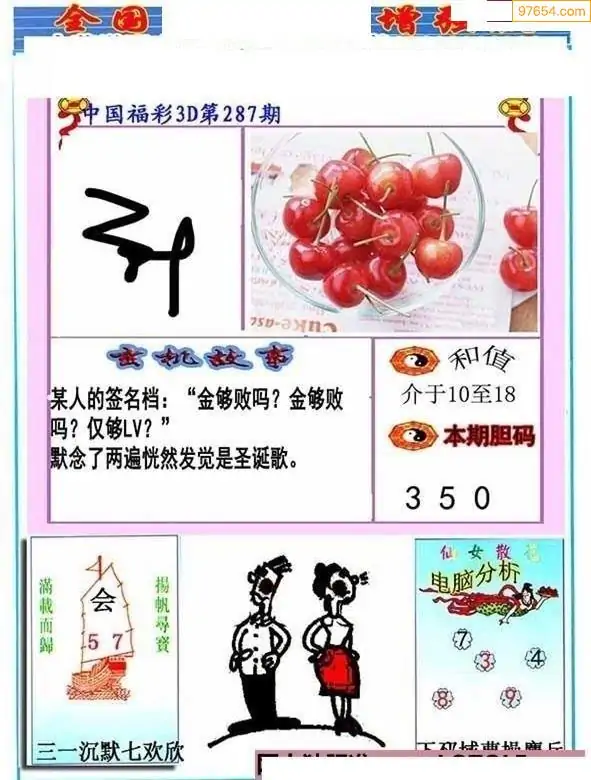 25287期福彩3D正版天宇和值谜