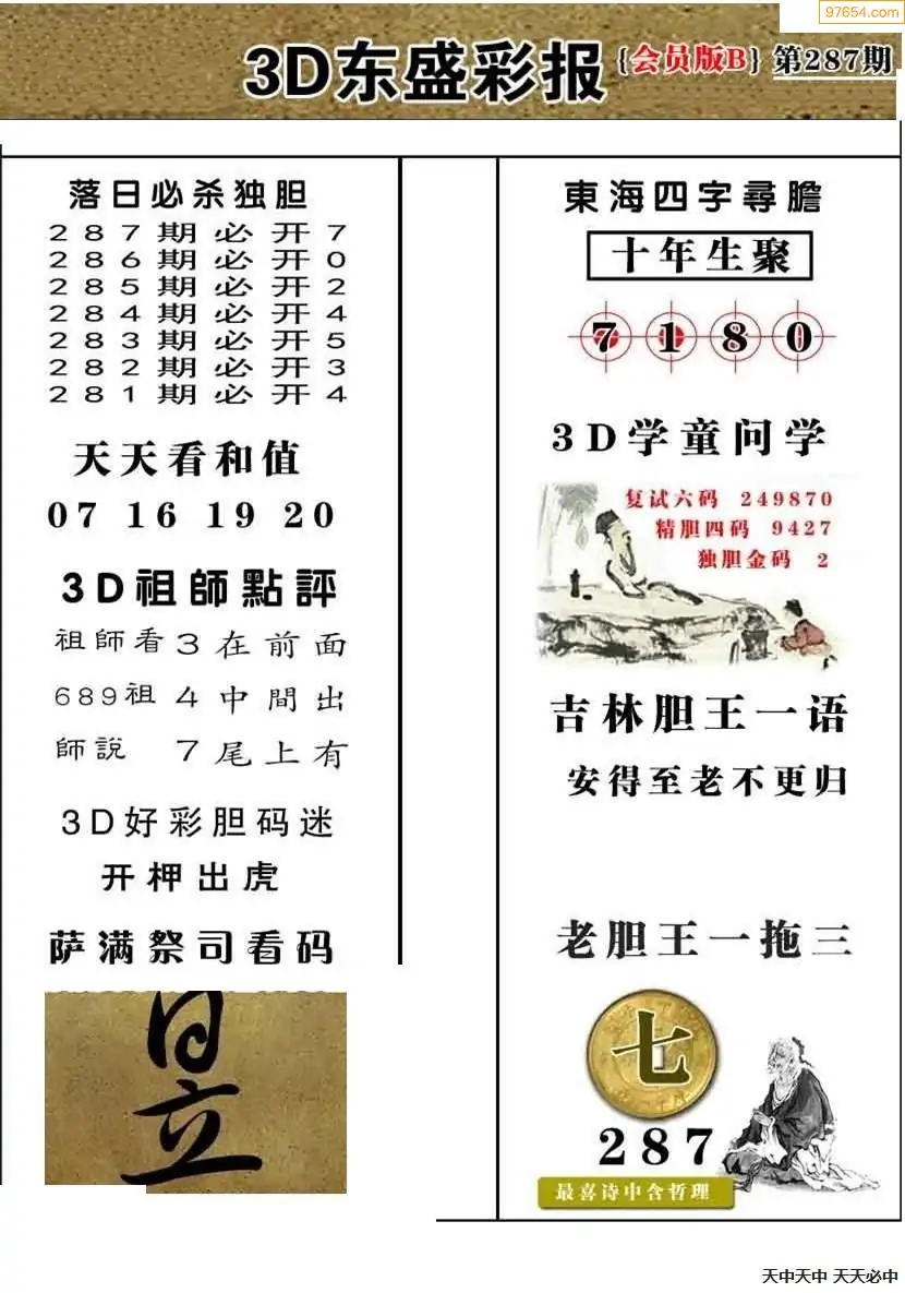 25287期今日3d三毛四版+东盛会员报