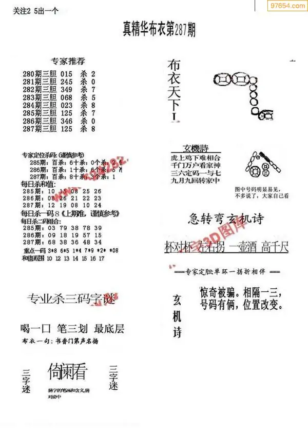 287期真版布衣神算专家推荐