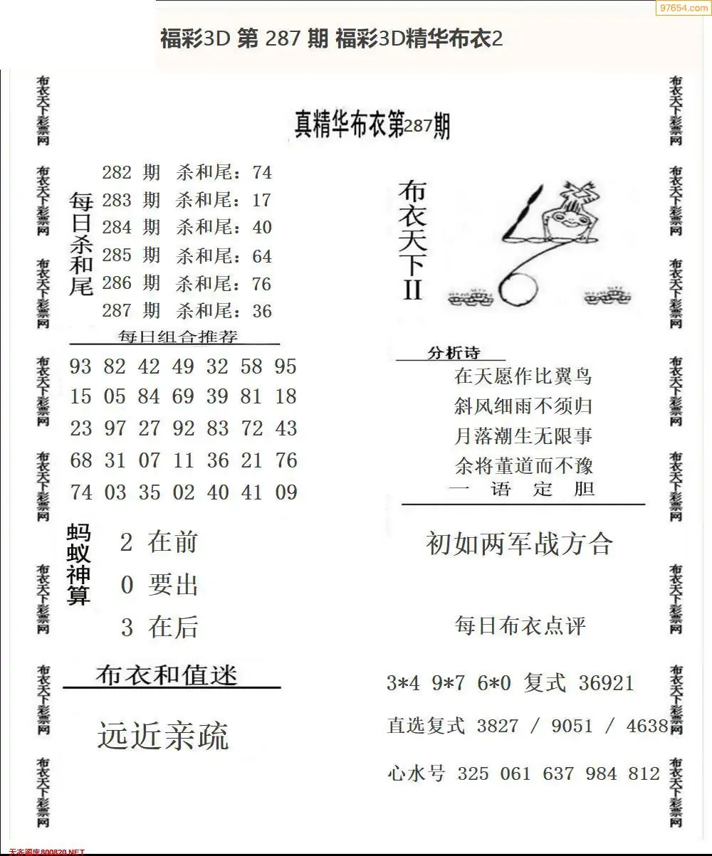 福彩287期3d真精华布衣+布衣早报(转载)