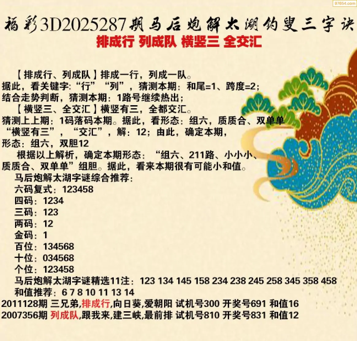 25287期福彩3d太湖钓叟三字诀历史汇总