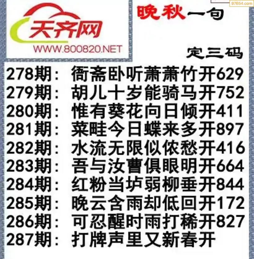 287期3D晚秋(和值)谜:本期无衣 D:三横五竖