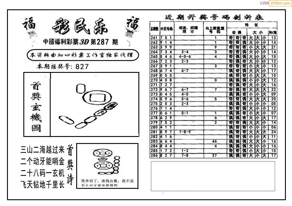 2025年福彩彩民乐287期