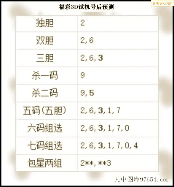 287期西南胆王预测本期3D开奖结果