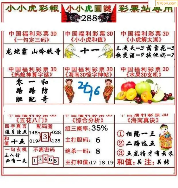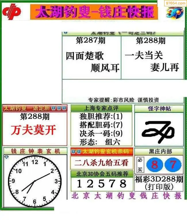 福彩3D288期天牛彩吧套图整合总汇