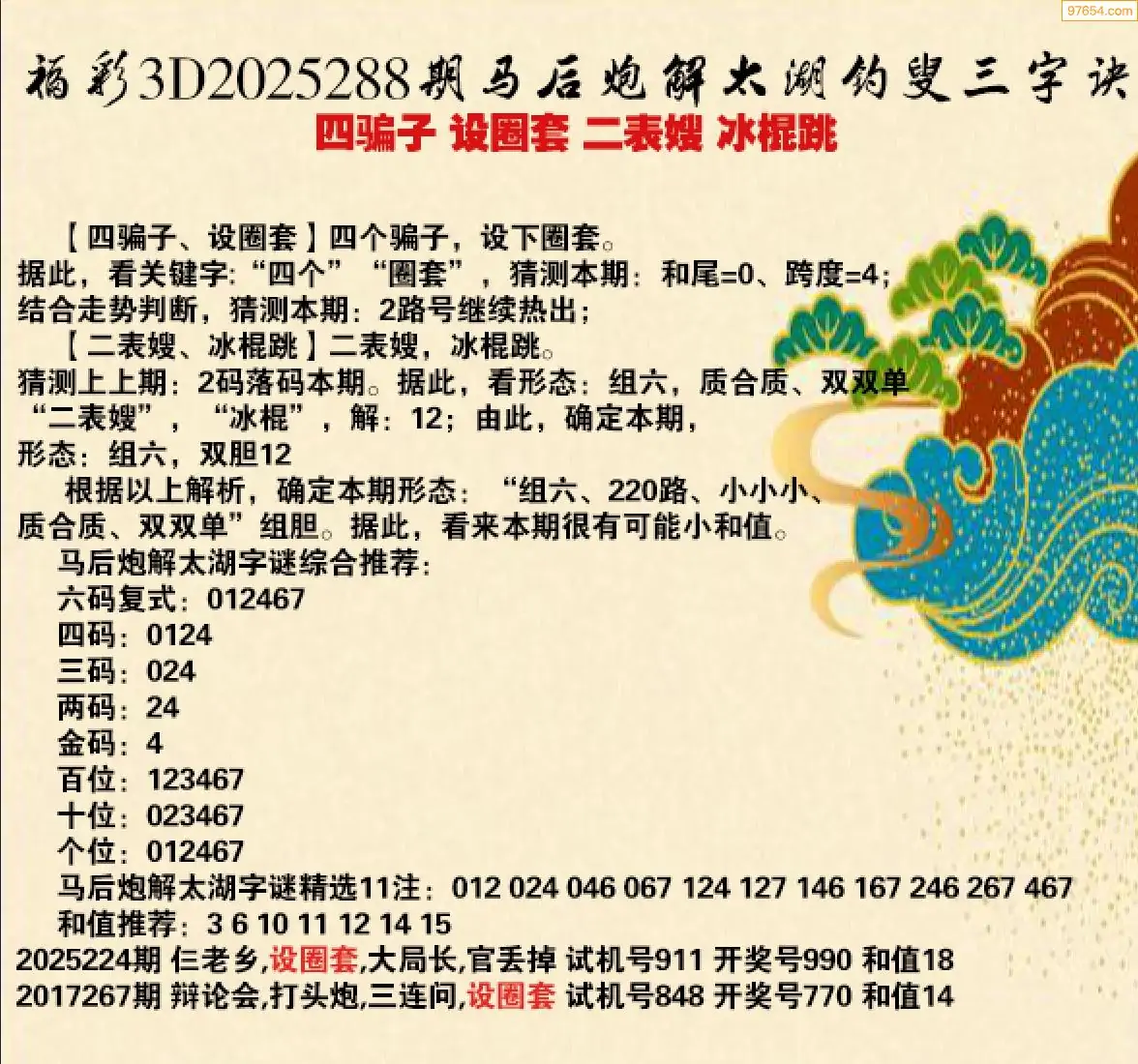 25年288期马后炮解3d太湖钓叟之 四骗子