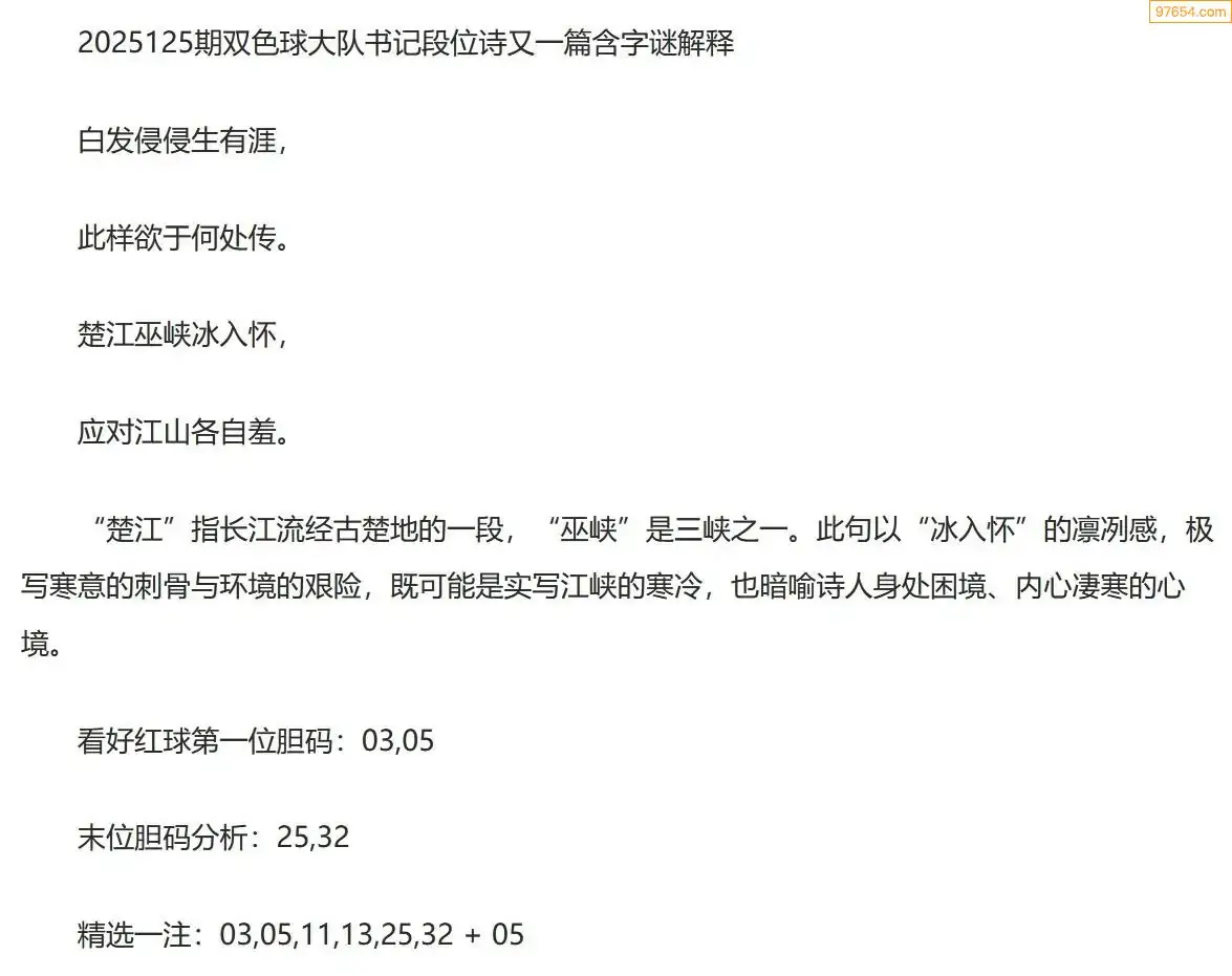 125期牛彩双色球字迷诗迷汇总(天中整理)