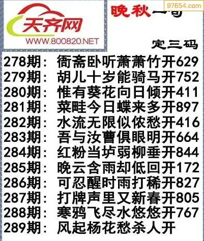 289期3d福彩今日晚秋字谜一句定三码