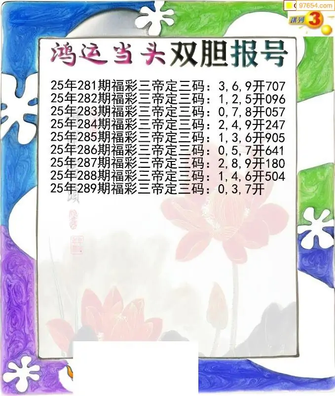 25289期鸿运当头双胆p3报号图