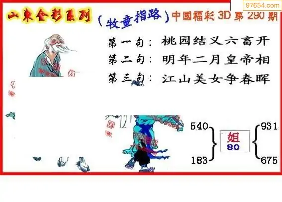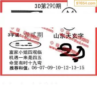 25290期福彩3D正版天宇和值谜