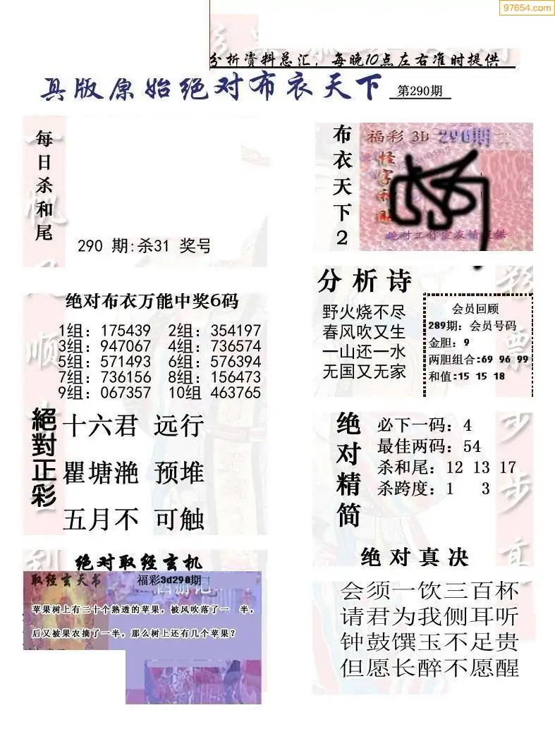 25290期真精华布衣123456(晚间报)