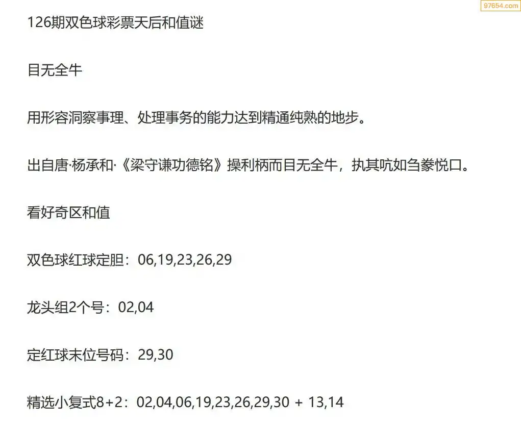 126期牛彩双色球字迷诗迷汇总(天中整理)