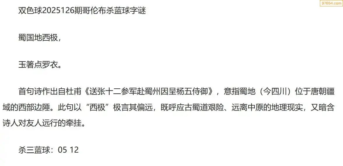 126期牛彩双色球字迷诗迷汇总(天中整理)