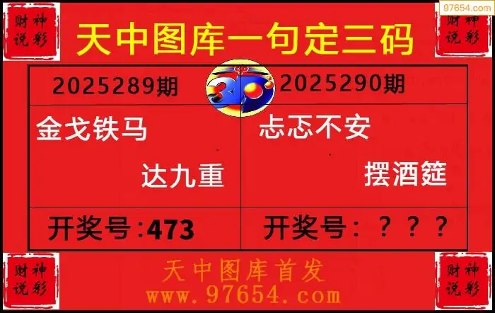 25290期福彩3D正版天宇和值谜
