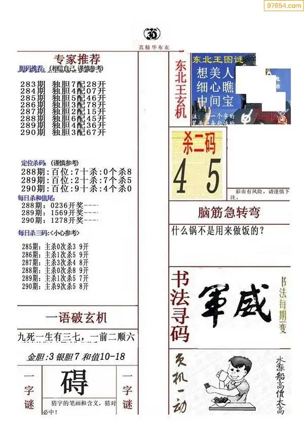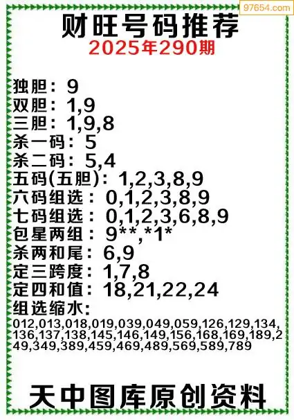 (9)25年289期当期全站杀号定胆图