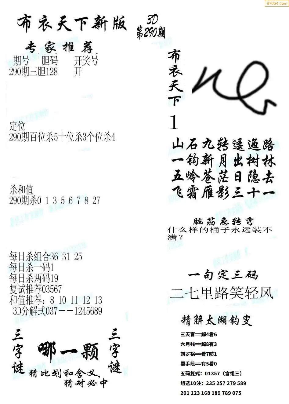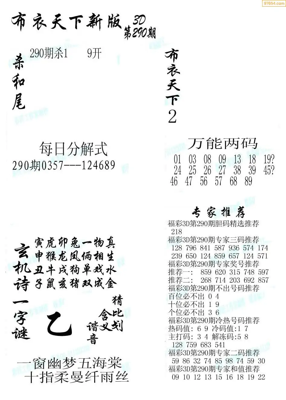 (8)25年290期今日3d各类彩报汇总