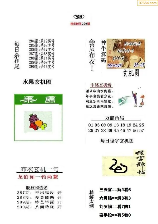 (5)25年290期福彩字谜图谜总汇