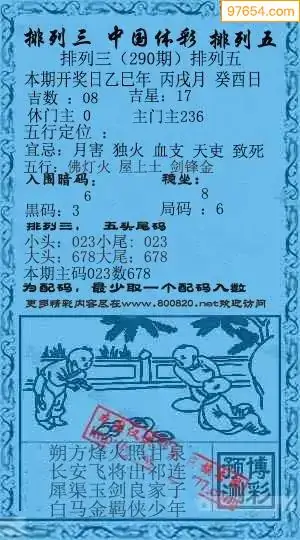 25年天吉体彩P3玄机怪字292期图迷