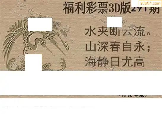 25291期福彩3D正版天宇和值谜
