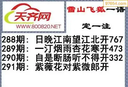 彩票3d字谜291期雪山飞狐一语定一注