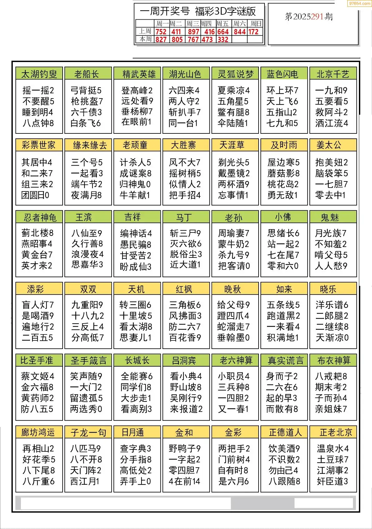 25年291期3d选号彩报图谜画谜