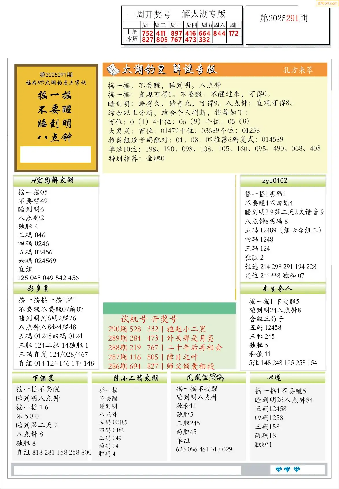 福彩3D291期天牛彩吧套图整合总汇