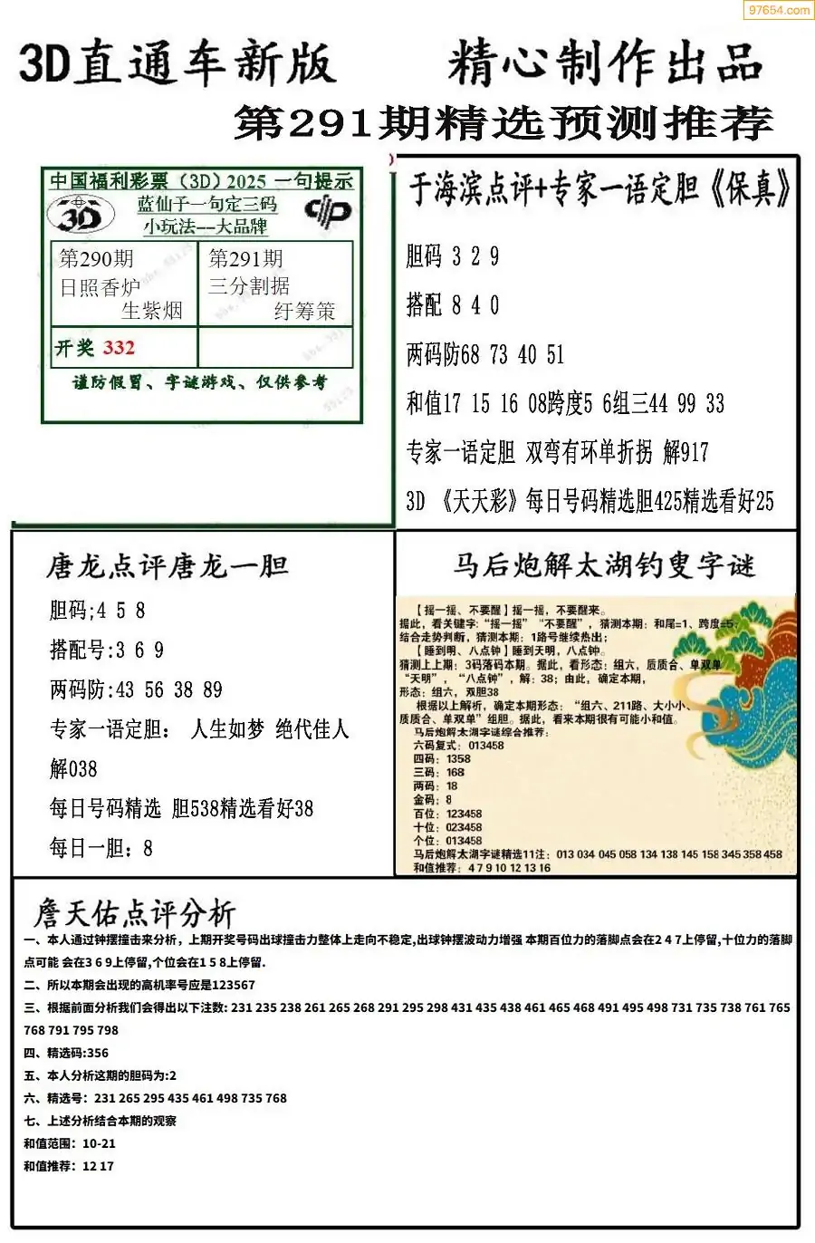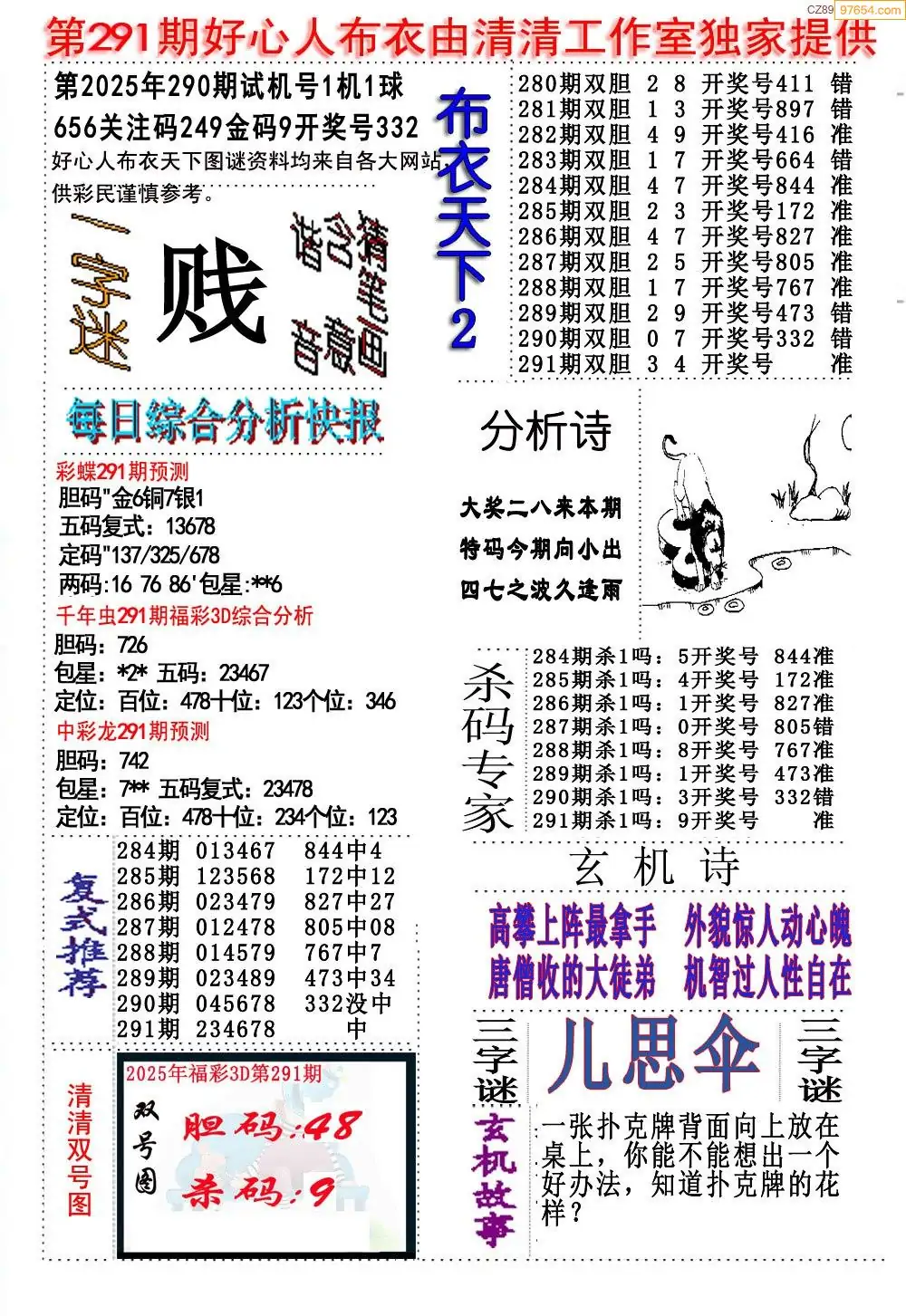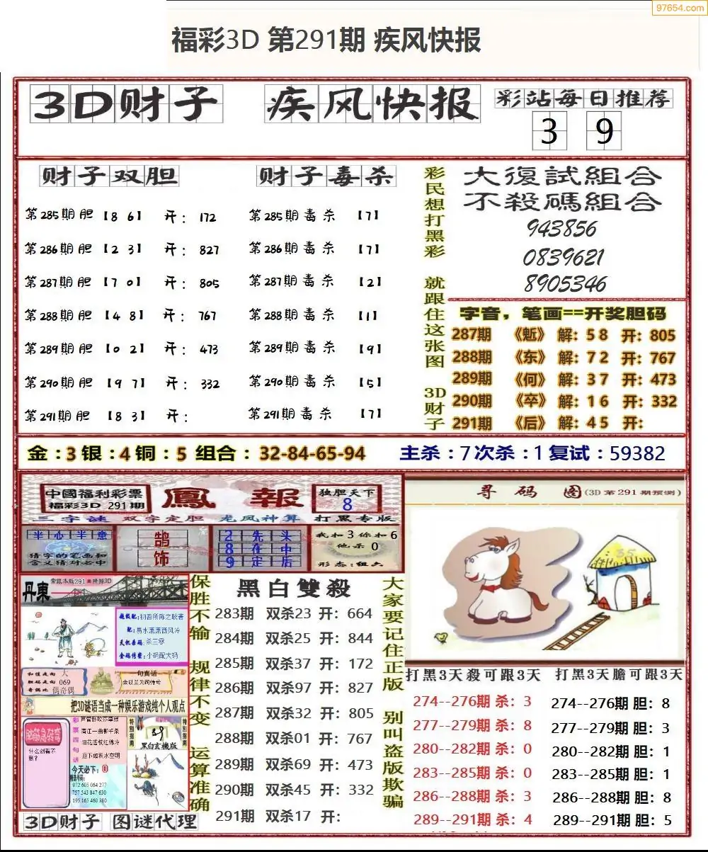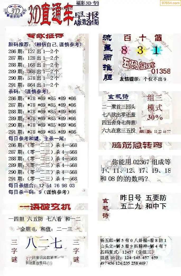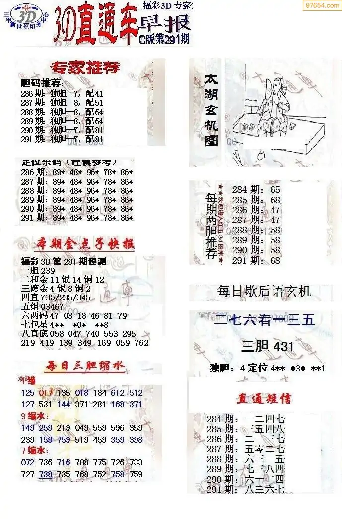 (8)25年291期今日3d各类彩报汇总