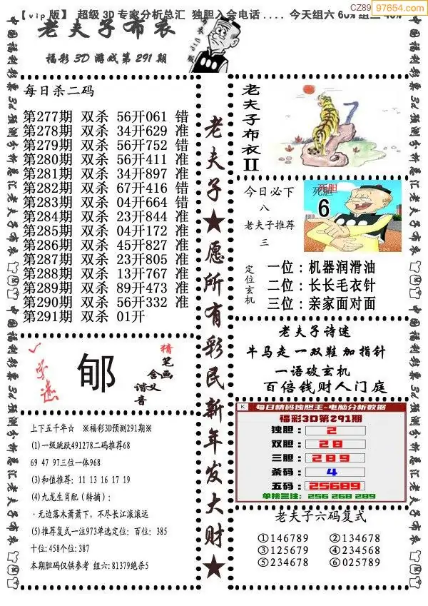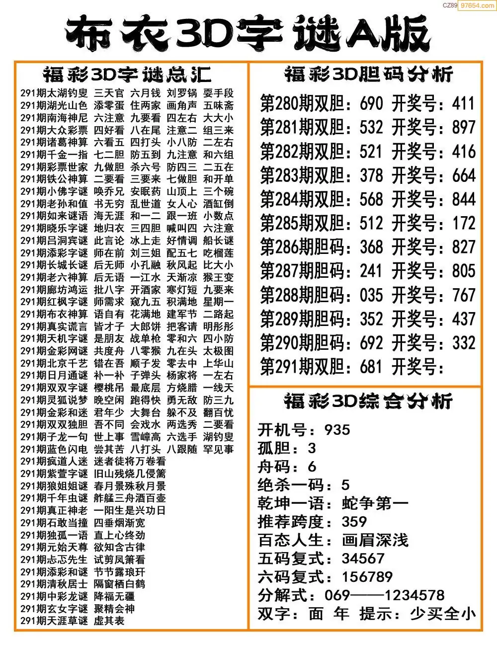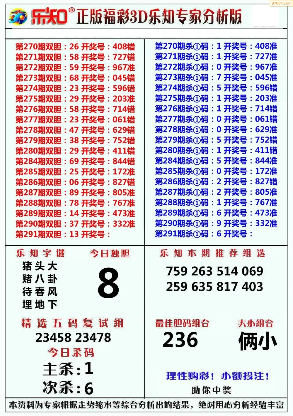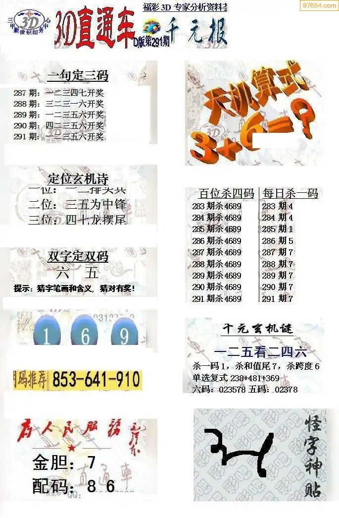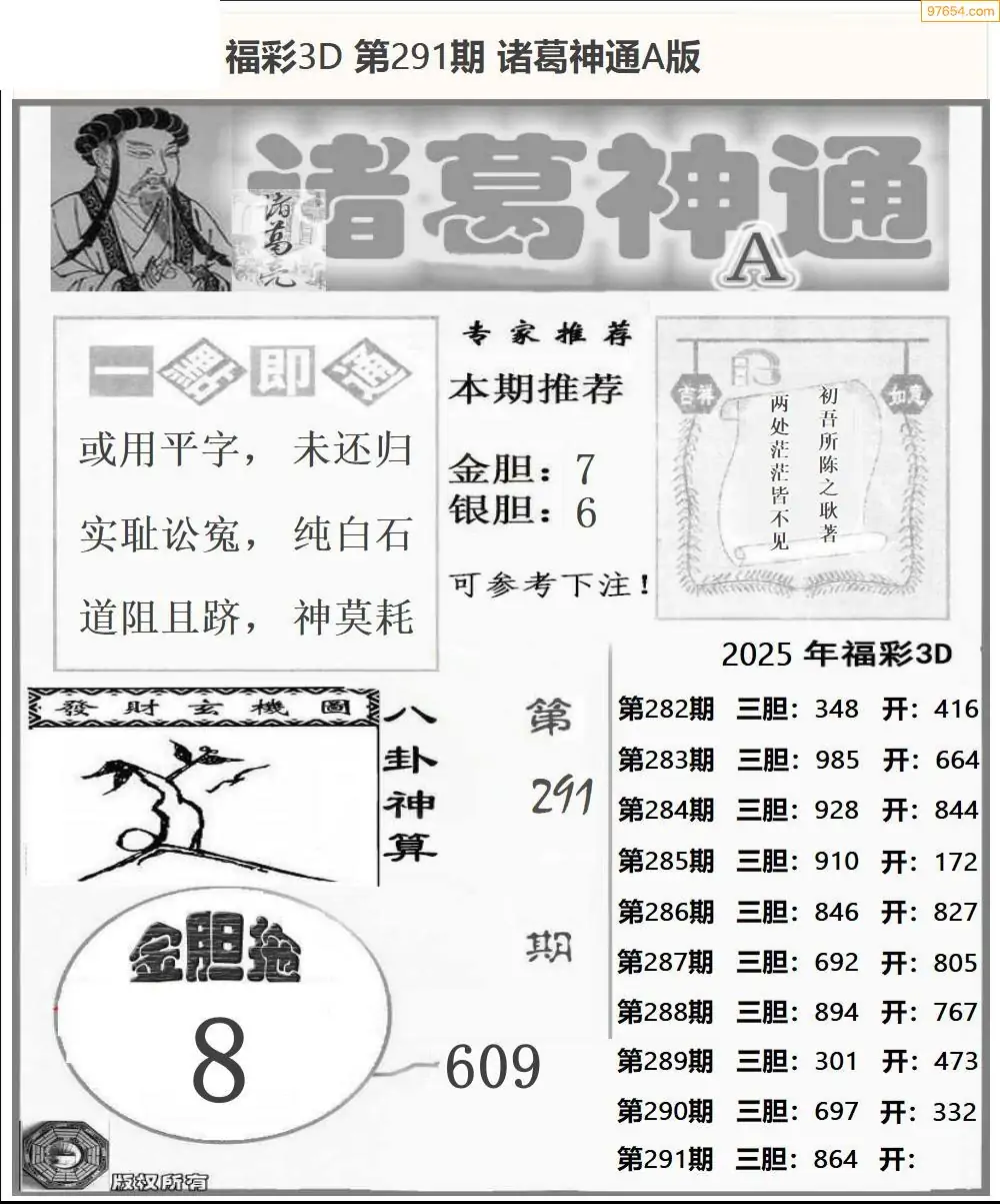 (8)25年291期今日3d各类彩报汇总
