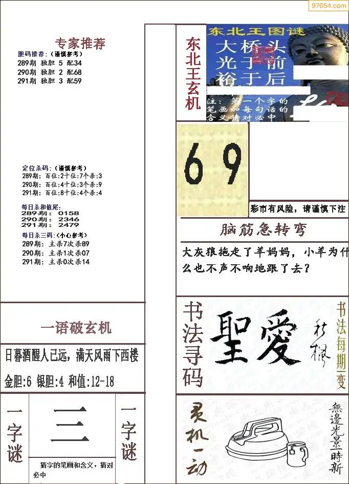 (5)25年291期福彩字谜图谜总汇