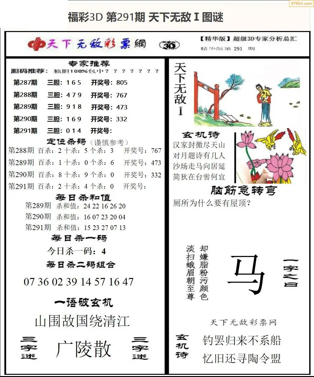 (1)25年291期今日3d图谜总汇