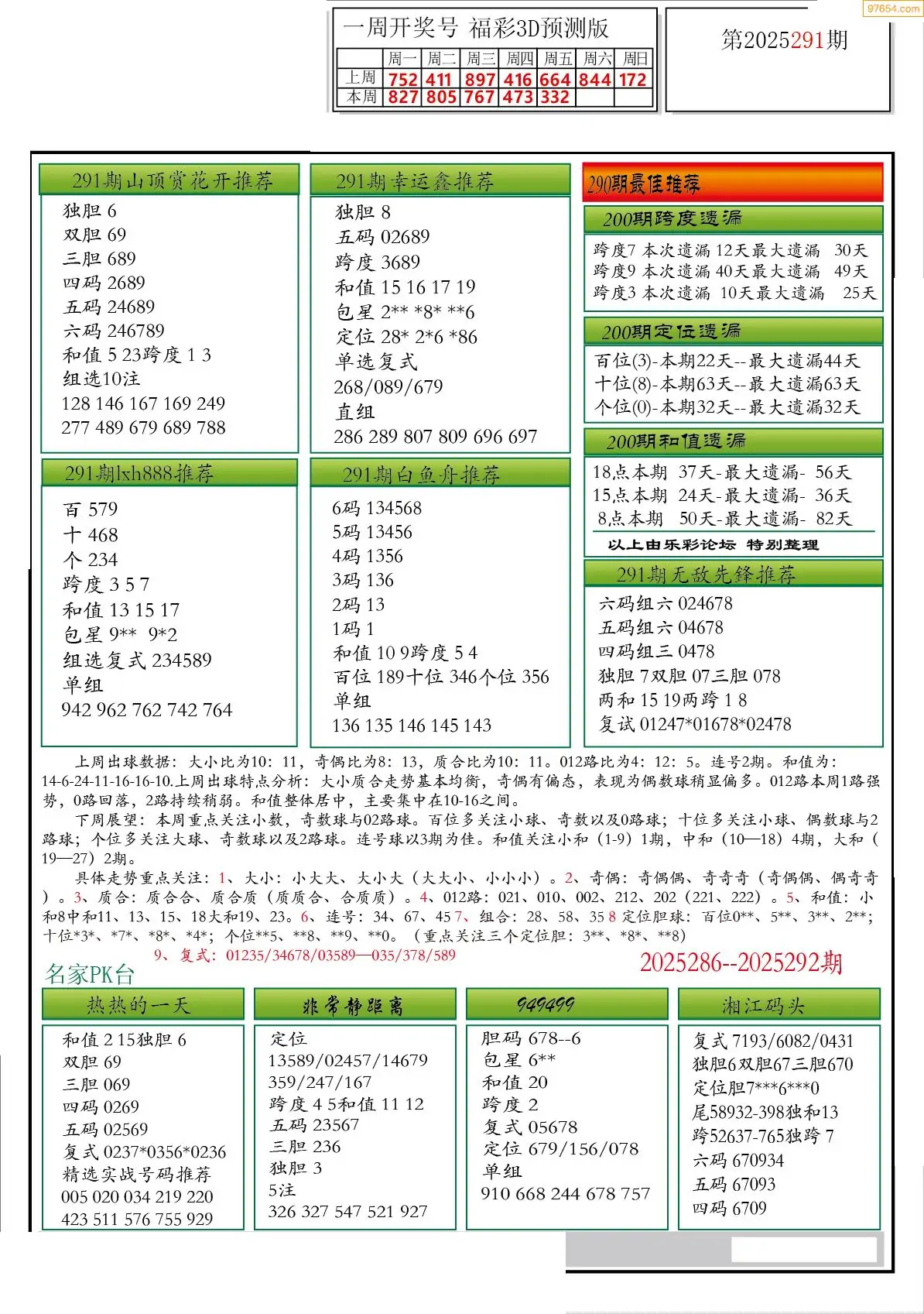 (2)25年291期本期3d图迷汇总
