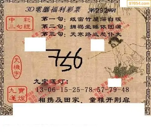 25292期福彩3D正版天宇和值谜