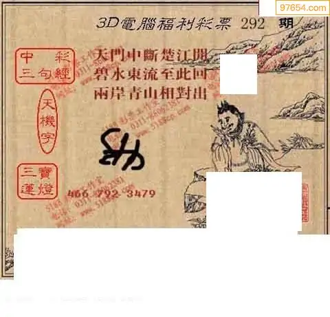 25292期福彩3D正版天宇和值谜