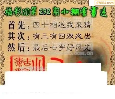 25292期福彩3D正版天宇和值谜