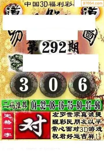 25年第292期3d高级鬼六神算图