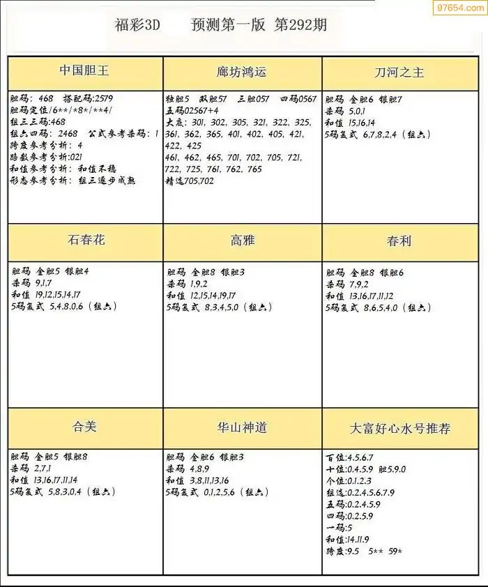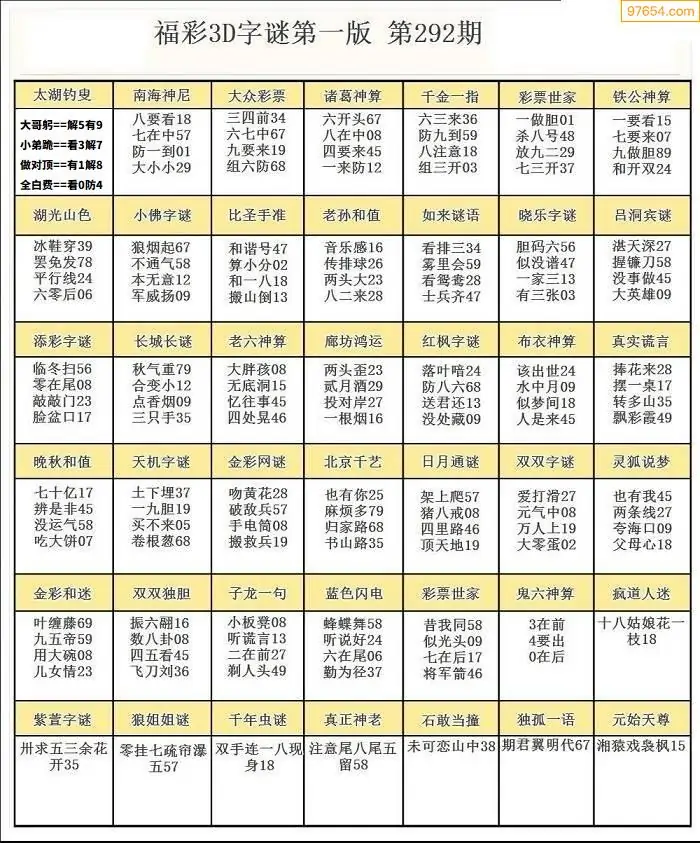 292期3D牛彩预测报+彩吧字谜报