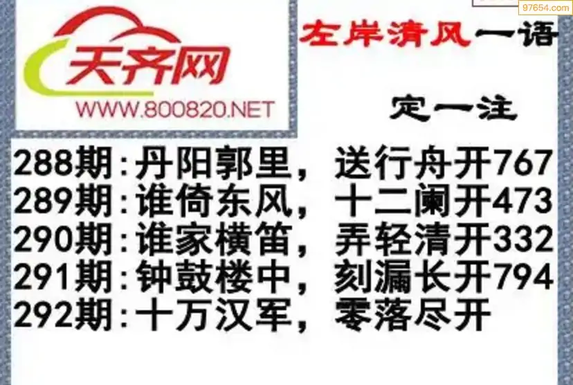 292期3D晚秋(乙种和值)谜:和落有序 D:妻差正好