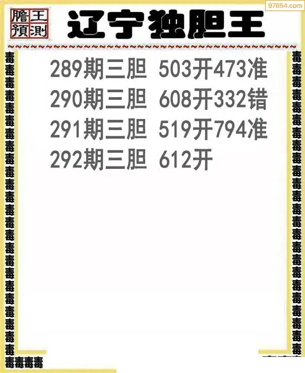 292期97654本站收集胆码出号预测