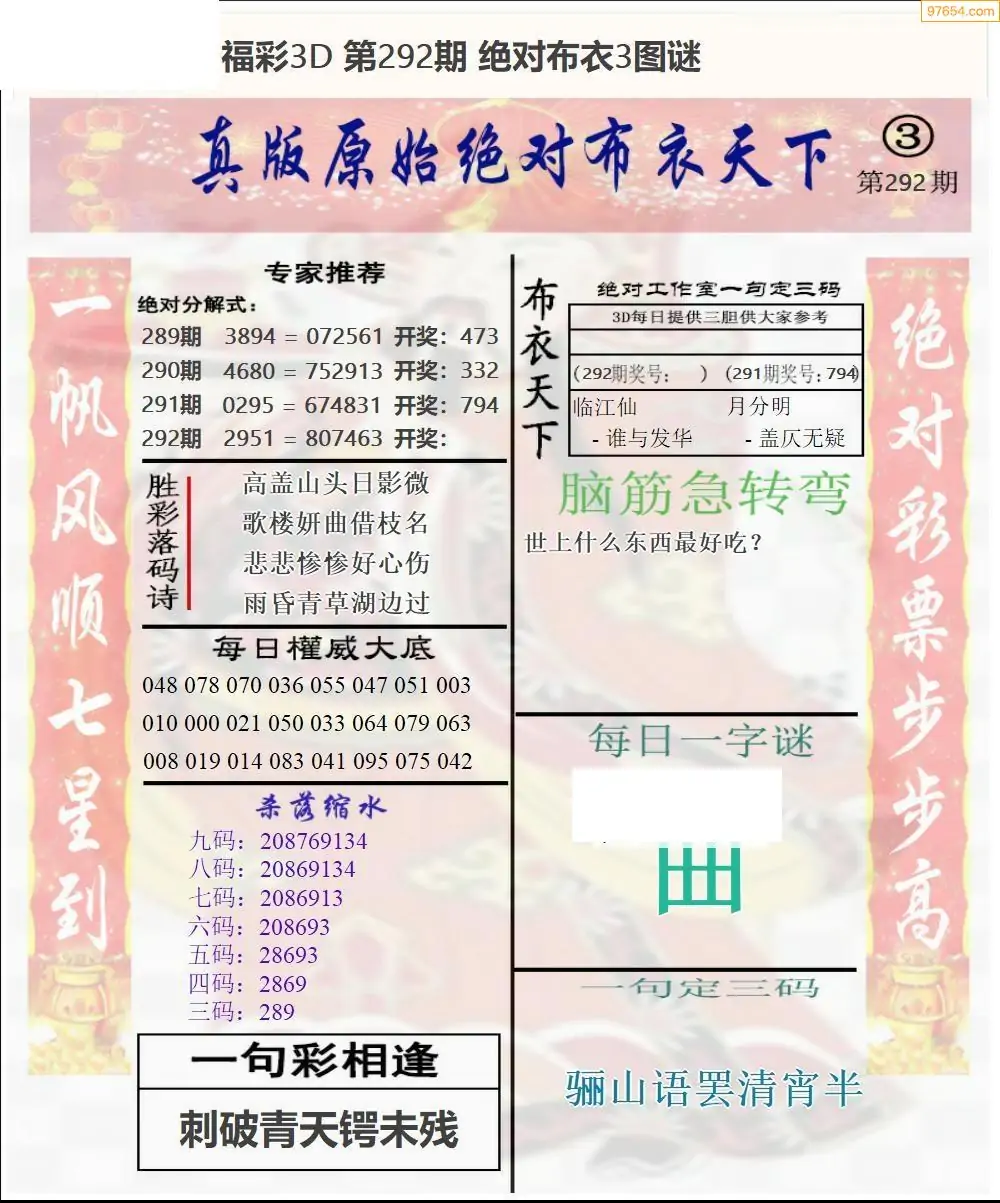 上一篇:292期福彩3d绝对布衣4