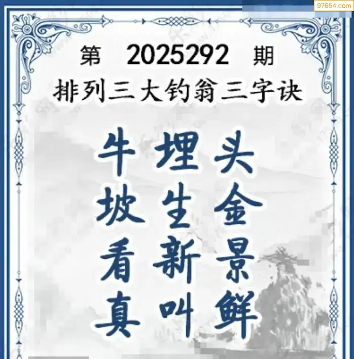25年体彩p3第292期大钓翁三字诀