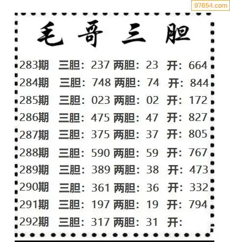 293期97654本站收集胆码出号预测