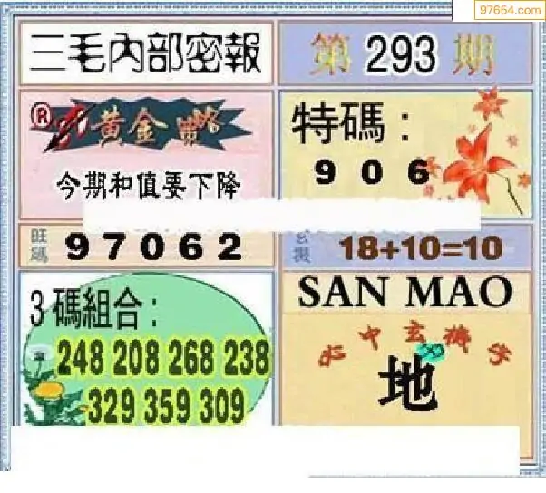 25年第293期3d高级鬼六神算图