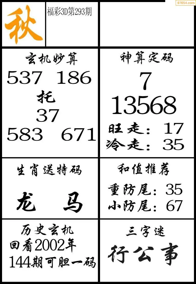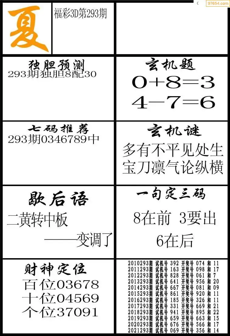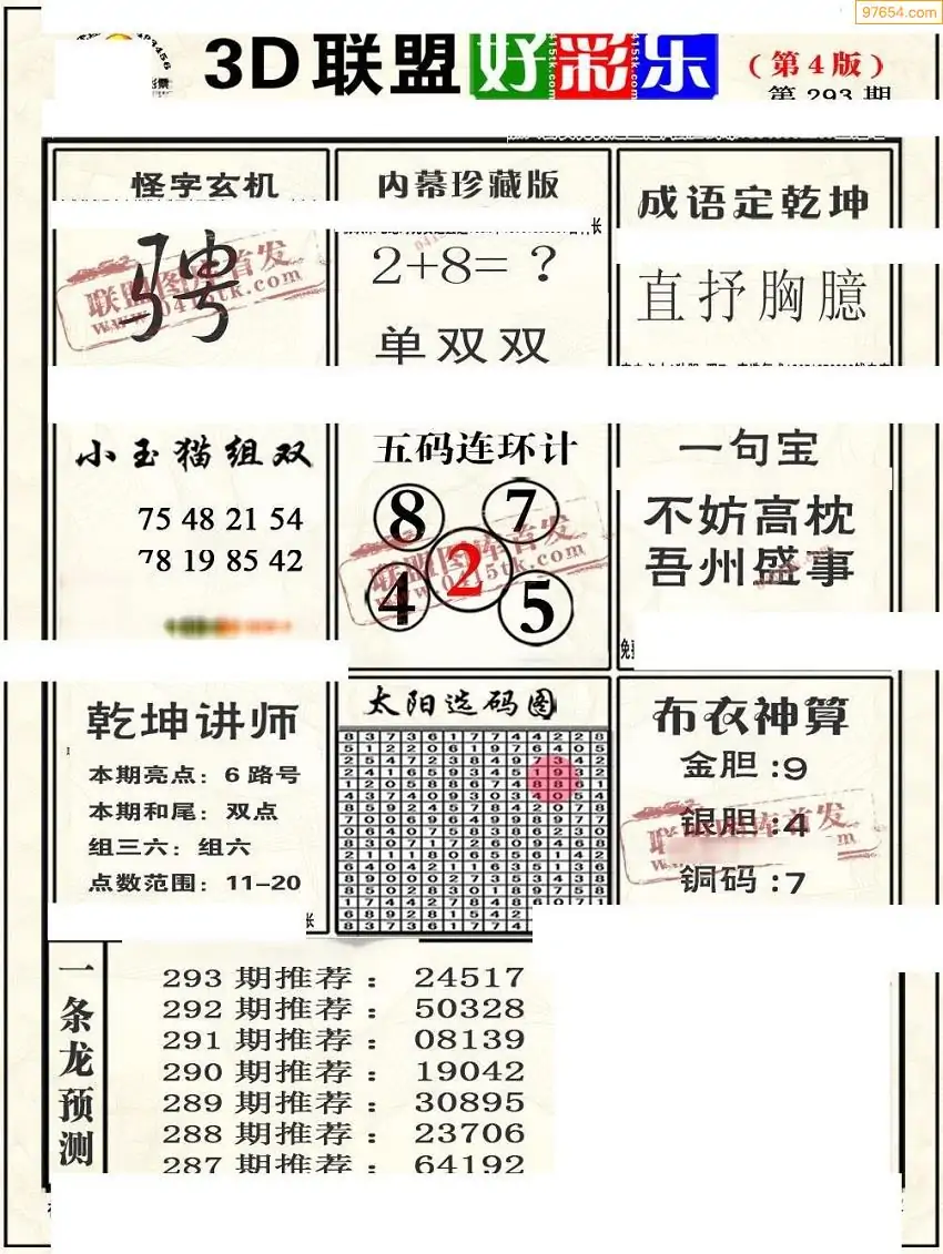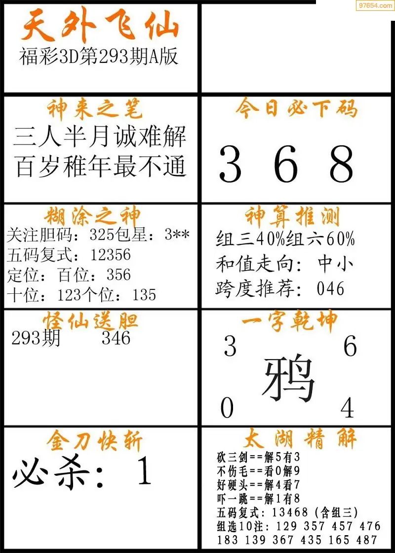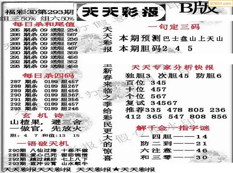 福彩3D293期天牛彩吧套图整合总汇